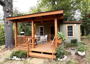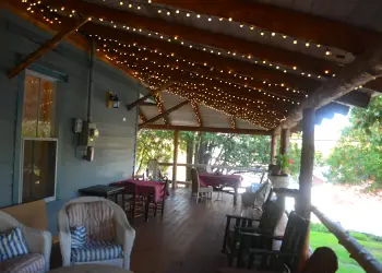 People waiting at a lodge.