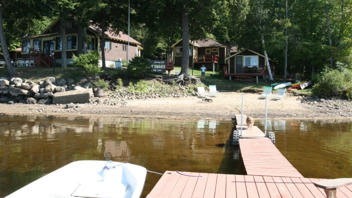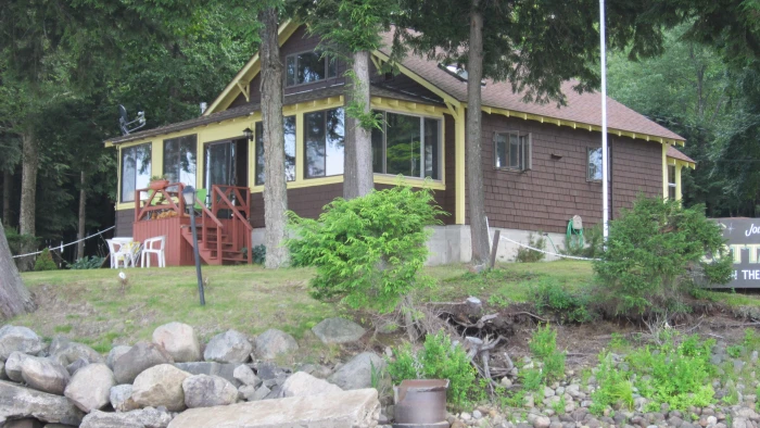 A small lakefront cottage colony of four housekeeping cottages with 1 - 3 bedrooms. Sleep up to 6 persons. Dock, beach, canoe and kayaks included. Weekly rates in-season: $1000 - $1200. A fully equipped house is also available that sleeps 8 and includes an enclosed porch overlooking the lake.