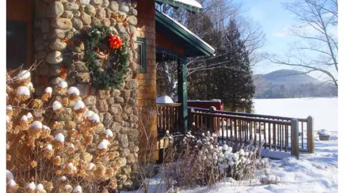 Snowshoes and sleds available for exploring and fun during the winter months. Call us for info about ice fishing on Blue Mountain Lake as well!