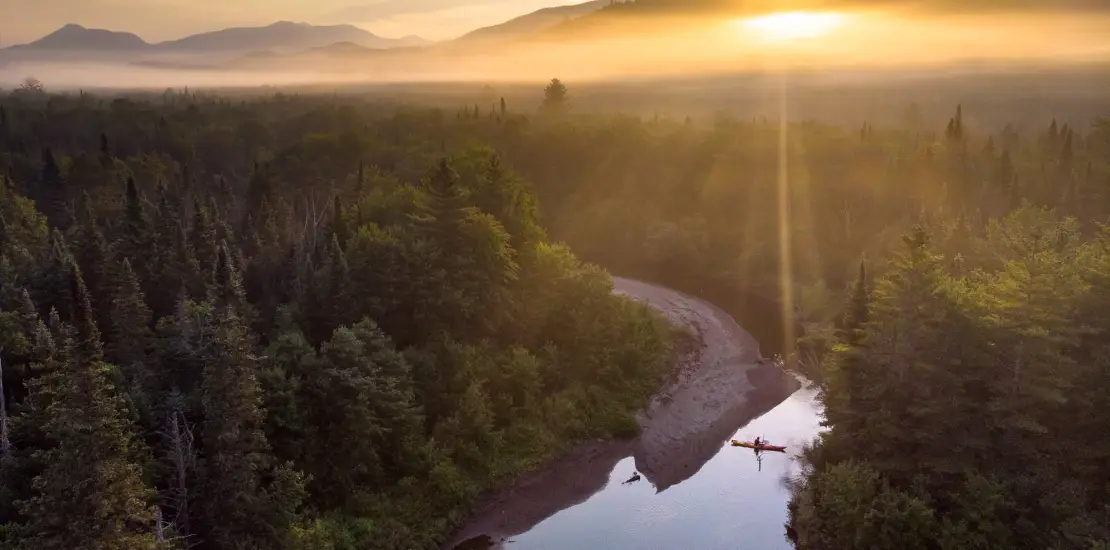 Kayaker on the Opalescent Aerial view of the Opalescent River
